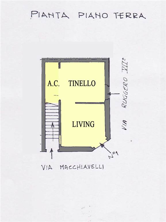 En el centro histórico de Pisticci, en Via Macchiavelli, en el barrio de Dirupo, ofrecemos a la venta una propiedad que consta de dos apartamentos contiguos. La planta baja cuenta con un salón con cocina americana/comedor y un pequeño baño.