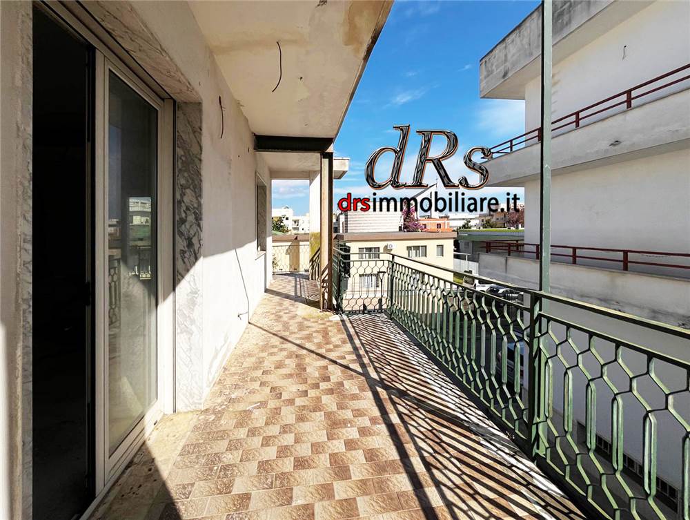 L'abitazione, ubicata al piano primo, l'immobile dispone del disimpegno, salone, cucina abitabile, corridoio, tre camere, due bagni, lavanderia e un enorme balcone angolare.